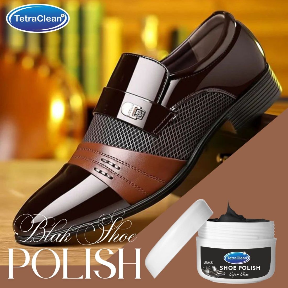 TetraClean Black Shoe Polish is a premium leather care solution designed to clean, polish, and protect your shoes, boots, belts, purses, and saddles. Its advanced formula restores the natural shine of leather while providing a deep black finish that lasts long. Enriched with protective polymers, it forms a shield against dirt, dust, and moisture, ensuring your footwear stays polished and well-maintained