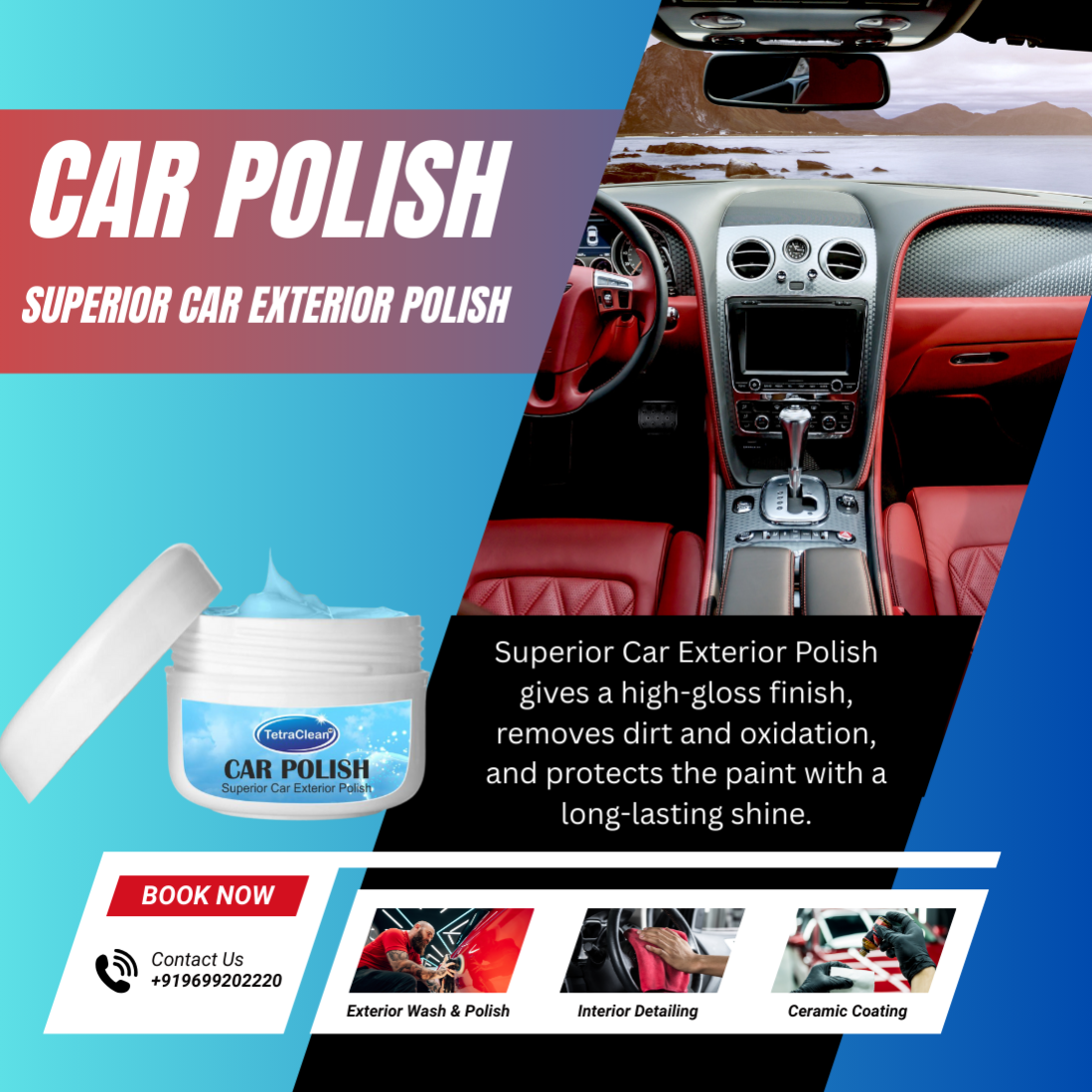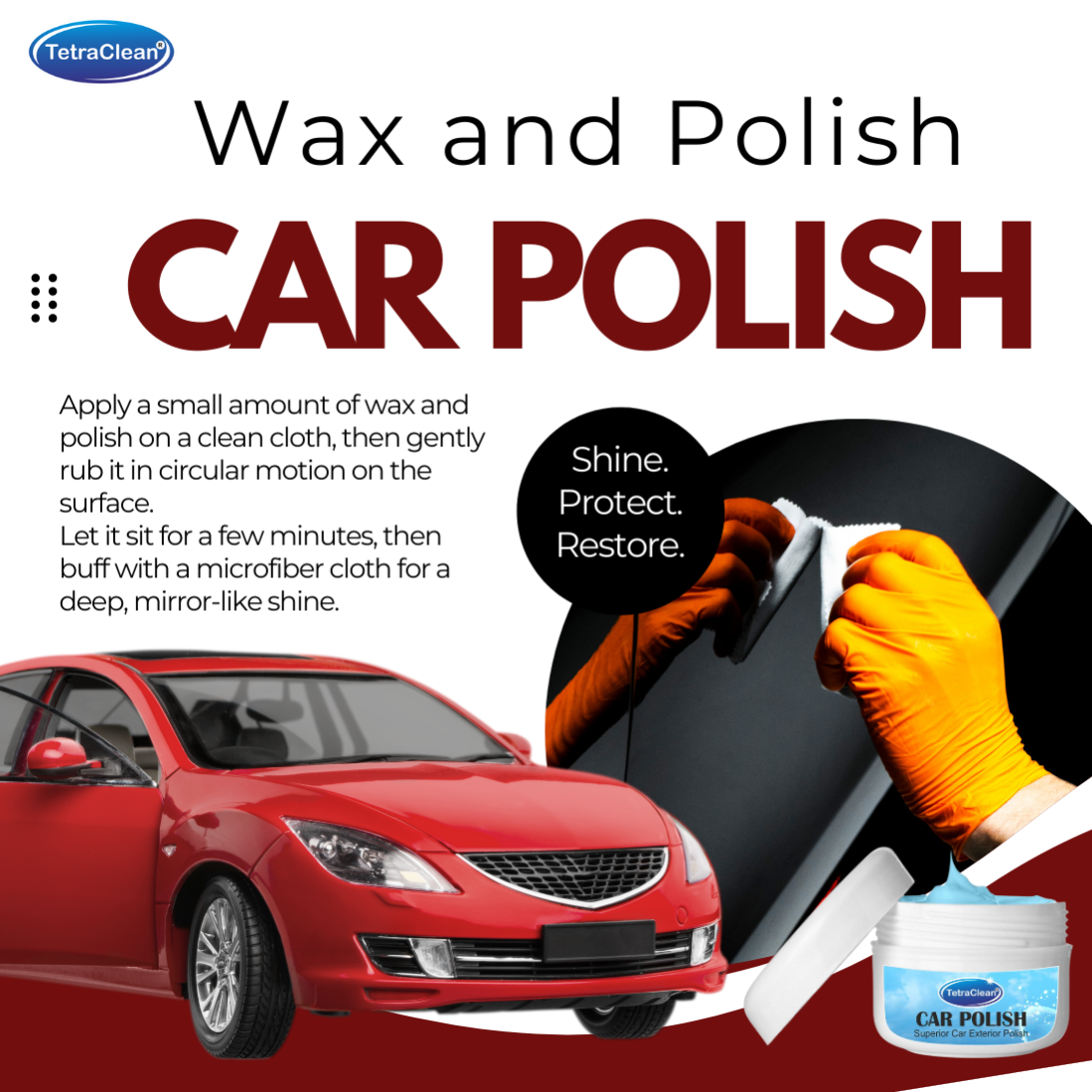TetraClean Superior Car Exterior Polish – High-Gloss Wax Finish Bring back your car’s shine with TetraClean’s advanced wax-based exterior polish. It removes dirt, oxidation, and minor scratches while giving a mirror-like, protective finish that lasts. Ideal for quick, professional-grade car care at home.