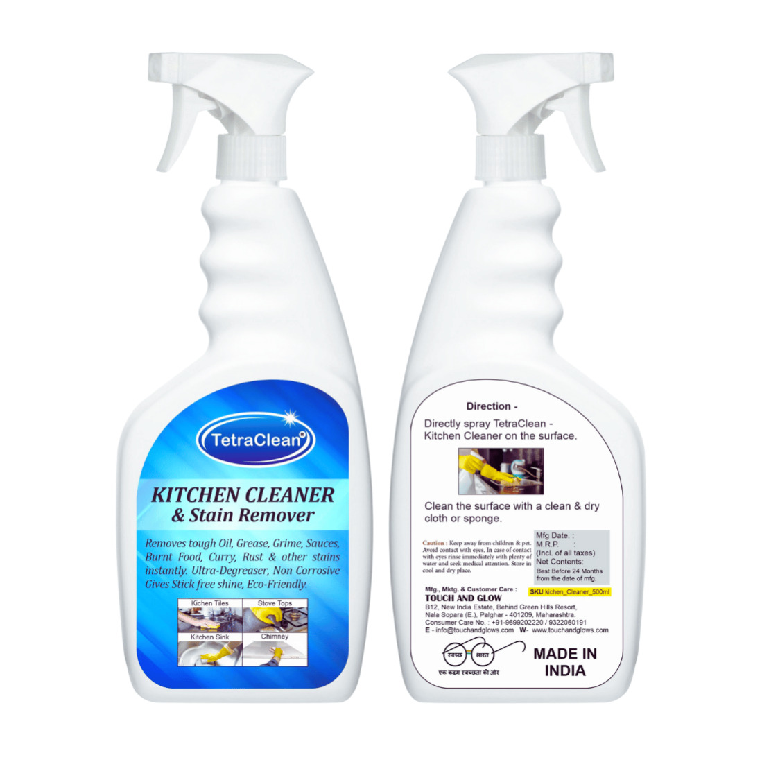 Keep your kitchen spotless and hygienic with Tetraclean Kitchen Cleaner 500ml. Specially formulated to tackle stubborn grease, oil splatters, and sticky stains, this cleaner ensures a sparkling and germ-free cooking space. Suitable for countertops, chimneys, stovetops, tiles, and other kitchen surfaces, it works quickly and leaves behind a refreshing cleanliness. Its powerful yet safe formula is tough on dirt but gentle on surfaces, making it an essential part of your daily kitchen cleaning routine.
