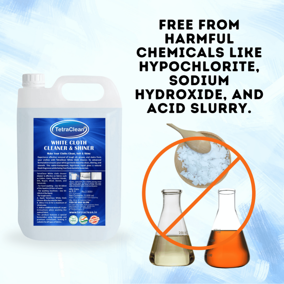 TetraClean White Cloth Cleaner & Shiner is a professional-grade cleaning solution designed to restore the original whiteness and shine of your clothes. Its advanced formulation removes oil, grease, dirt, and tough stains without damaging the fabric.
