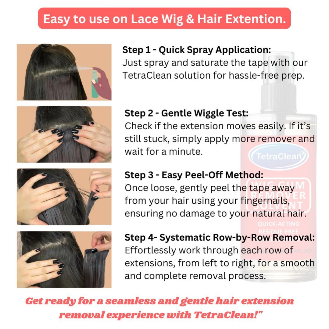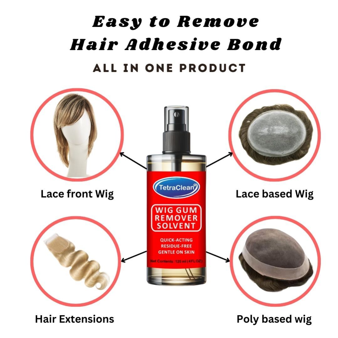 Say goodbye to stubborn hair adhesive bonds with TetraClean® Wig Gum Remover Solvent, the all-in-one solution designed to safely and effectively remove lace wigs, poly wigs, lace front wigs, and hair extensions.
