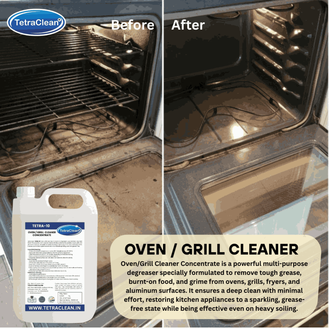 Safe, effective, and economical, TetraClean Oven & Grill Cleaner ensures long-lasting cleanliness, making it the ideal solution for restaurants, hotels, catering services, and households looking for professional-grade results.