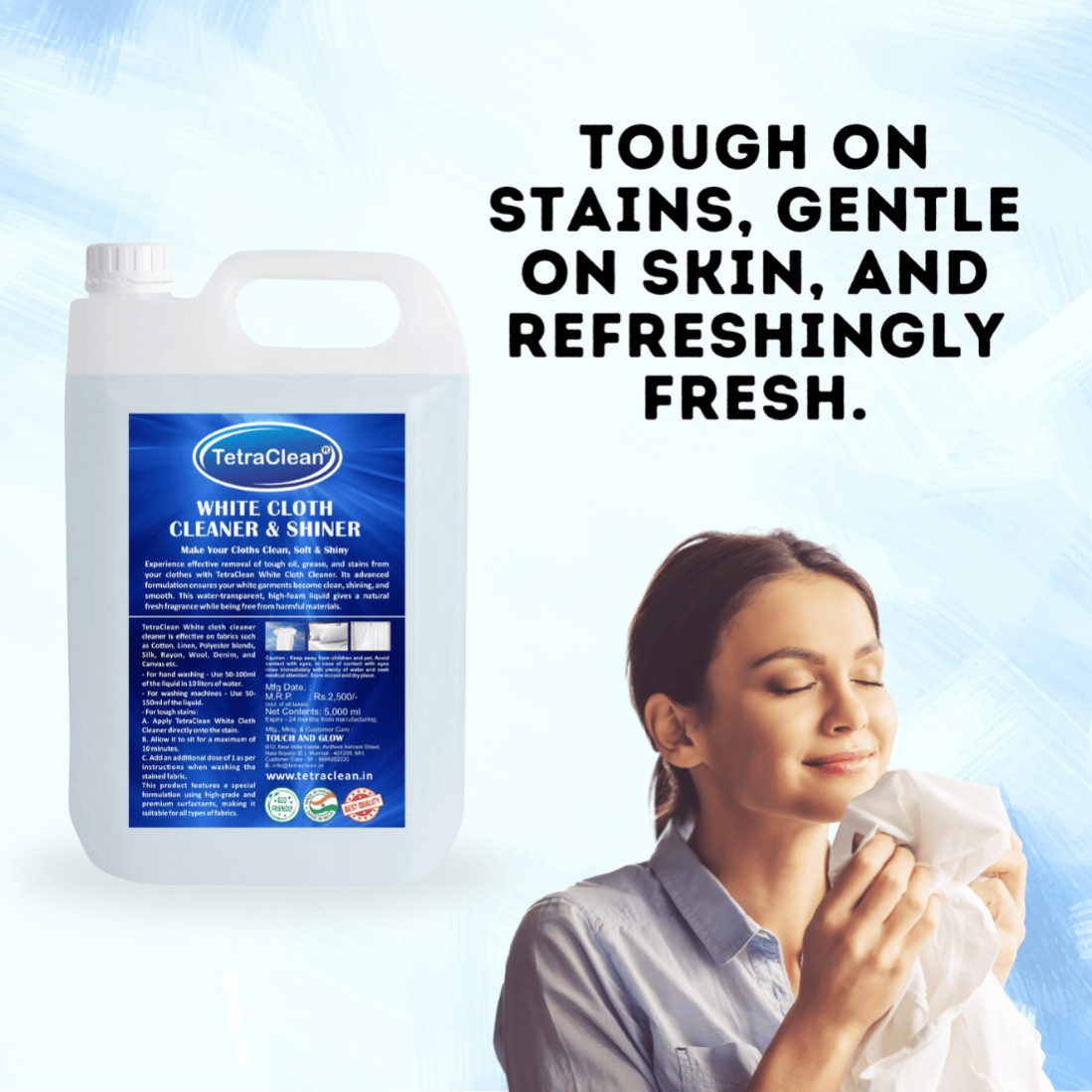 TetraClean White Cloth Cleaner & Shiner is a professional-grade cleaning solution designed to restore the original whiteness and shine of your clothes. Its advanced formulation removes oil, grease, dirt, and tough stains without damaging the fabric.