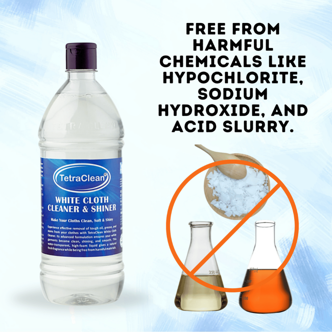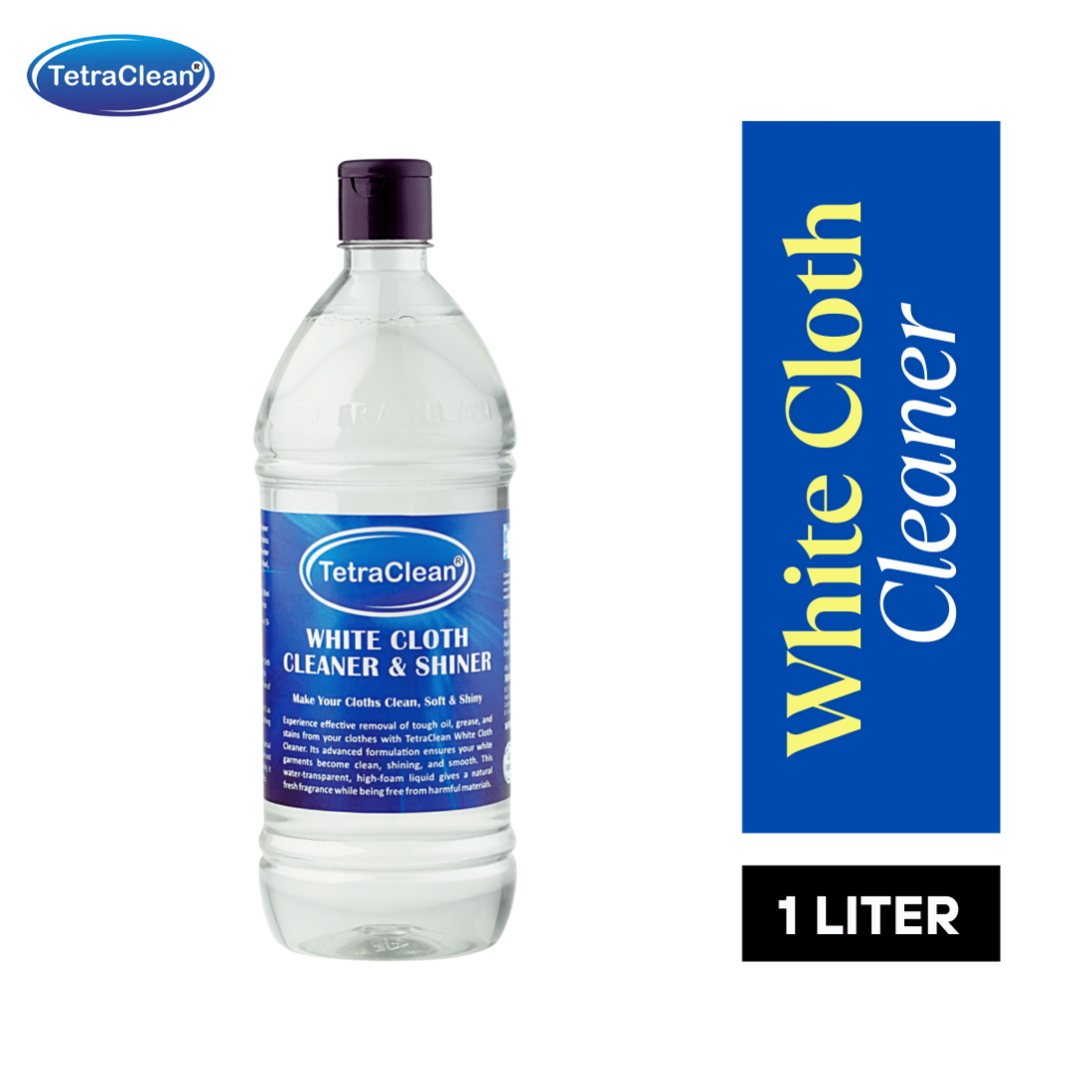 TetraClean White Cloth Cleaner & Shiner is a professional-grade cleaning solution designed to restore the original whiteness and shine of your clothes. Its advanced formulation removes oil, grease, dirt, and tough stains without damaging the fabric.